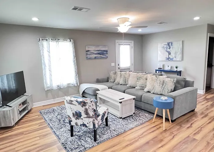 **Situated conveniently, this home is close to local attractions and natural havens.** With easy access to scenic parks and recreational activities, guests can relish the blend of nature and culture that defines the area. The peaceful façade belies the vibrant experiences waiting just around the corner, making Hues of Blue the quintessential destination for exploring the charm of Southeast Texas.